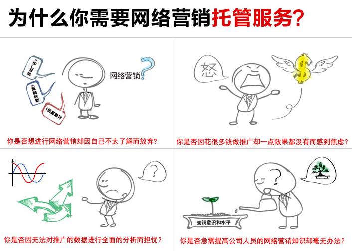 試想一下你在網(wǎng)上搜索產(chǎn)品的時(shí)候你選擇網(wǎng)站的時(shí)候會(huì)一直拉到最后面去嘛,據(jù)小編的調(diào)查,一般的用戶都是會(huì)點(diǎn)擊前十位的網(wǎng)站,除非前面十位的網(wǎng)站不是自己所喜歡才會(huì)去選擇后面的網(wǎng)站。那也有很多的企業(yè)向做百度競價(jià)推廣,但一直愁招不到這方面的人才,開了賬戶也沒有專業(yè)的人員來監(jiān)管,那該怎么辦呢,不要著急,深度網(wǎng)還有一支強(qiáng)大的運(yùn)營團(tuán)隊(duì),深度網(wǎng)可以幫您代運(yùn)營!