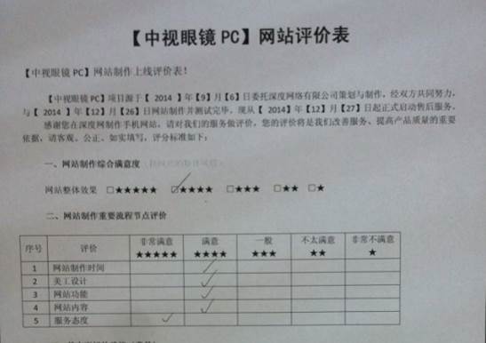 廣州中視眼鏡營銷型網(wǎng)站上線確認表: