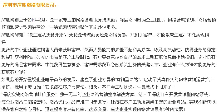 營銷型網(wǎng)站建站專家,做好一個網(wǎng)站前期的策劃特別重要,如果網(wǎng)站沒有策劃好就會給網(wǎng)站的訂單轉(zhuǎn)化帶來很大的影響,那么深度網(wǎng)到策劃到底是誰呢?那就是單仁資訊非常認可的精英陳先生,他有自己獨特的網(wǎng)絡(luò)營銷經(jīng)驗,獨特的網(wǎng)絡(luò)營銷理念以及獨特的網(wǎng)絡(luò)營銷實干經(jīng)歷以及歸納能力、思維模式,因此,他策劃出來的營銷型網(wǎng)站能讓眾多的企業(yè)賺錢這是必然的。 做網(wǎng)站就是做一個網(wǎng)站的形象,只要形象做的好,任何企業(yè)都比不上我們,其中有很多學(xué)問是小的建站公司不能比、也學(xué)不來的,這是我們公司建網(wǎng)站的靈魂,也是我們陳總是學(xué)問之處。那么深度網(wǎng)到底有哪些網(wǎng)站賺錢了呢?在這里列舉幾條: