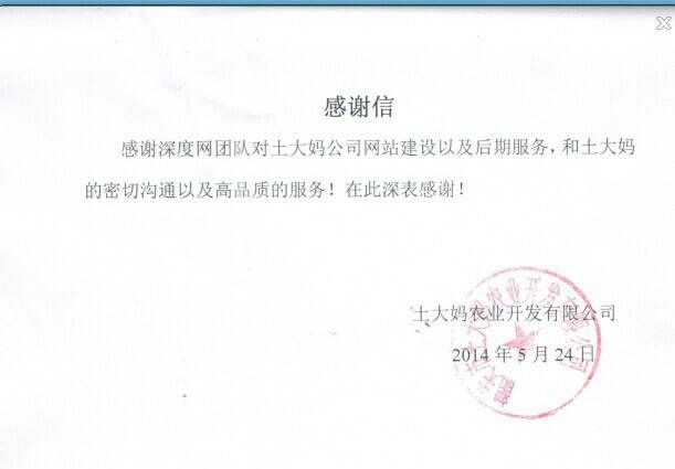 此圖土大媽的感謝信,只要大家搜索土大媽就能搜到此網(wǎng)站。 起龍電子這個項目也是因為在深度網(wǎng)建的網(wǎng)站達到這樣的,所以網(wǎng)站的前期策劃很重要,如果策劃不好,進來的目標客戶不知道我們是做什么的,也不知道我們講到重點是什么,因此,想找一個網(wǎng)站前期的策劃工作特別重要。深度網(wǎng)客戶夢居裝飾,網(wǎng)站上線2個月,單靠網(wǎng)站已經(jīng)接了幾十萬的裝修訂單!你是否還在猶豫網(wǎng)站做了會不會有效果,你是否還在懷疑互聯(lián)網(wǎng)。要想搭建一個具有營銷力的網(wǎng)站,要想找一個專業(yè)的網(wǎng)絡(luò)公司,要想在互聯(lián)網(wǎng)幾億網(wǎng)民中分一杯羹,深度網(wǎng)能幫助你!.jpg)
