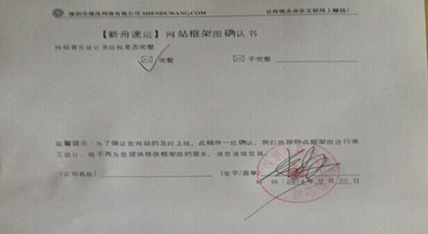 一、網(wǎng)站框架確認(rèn)書: